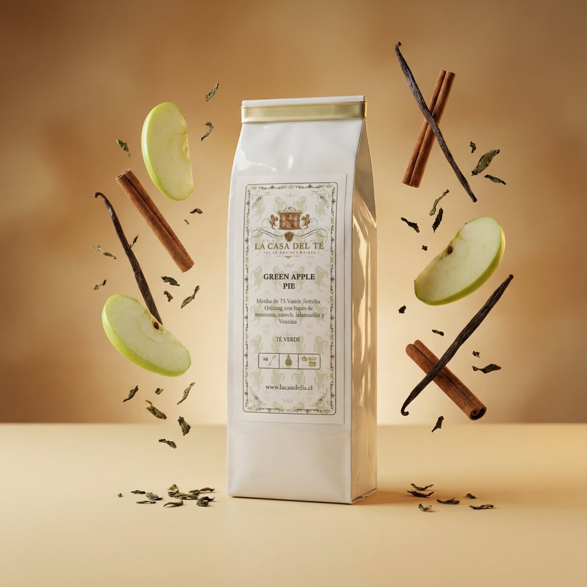 Imagina el aroma de un pie de manzana recién horneado de la abuela. Este blend artesanal captura esa magia combinando té verde de calidad con manzana verde deshidratada, canela de Ceylon y un toque de vainilla. El resultado es una infusión reconfortante que evoca las mejores memorias de otoño.